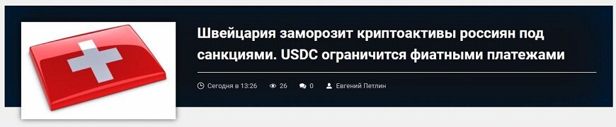 В пятницу Федеральный совет Швейцарии объявил, что не только будет придерживаться общеевропейских санкций против РФ, но и добавит к ним собственное положение, связанное с криптовалютами. Министр экономики Швейцарии Ги Пармелен подтвердил, что власти уже заморозили банковские счета и материальные активы 223 россиян в соответствии с новыми требованиями.