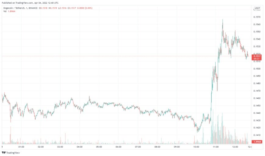 Курс криптовалюты Dogecoin вырос на 10% в этот понедельник после объявления о существенных вложениях Илона Маска в Twitter.