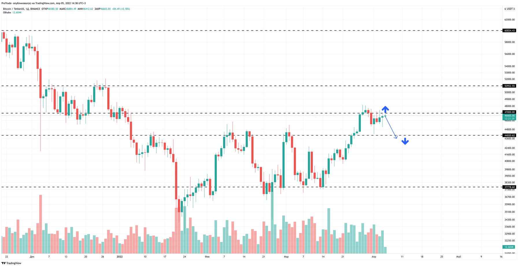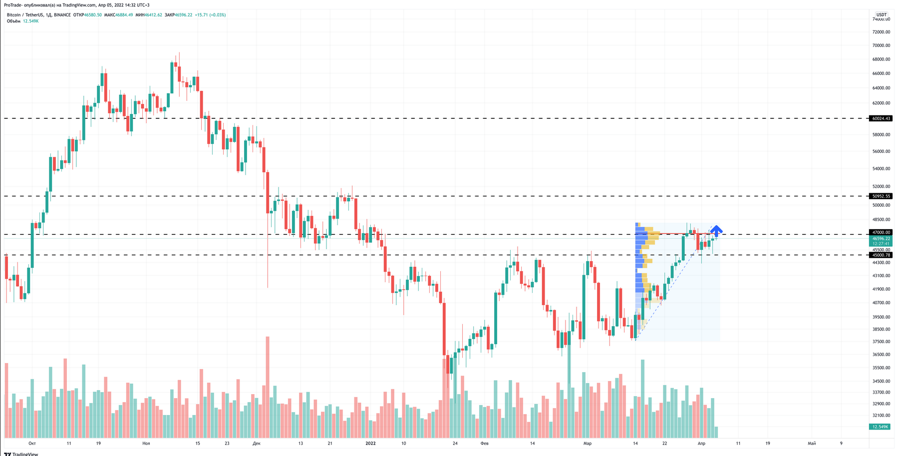 Инвестидея: покупка биткоина выше $47 тыс. в ожидании продолжения роста