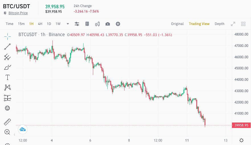 ⚡️Курс биткоина опустился ниже $40 тыс. За последние сутки BTC подешевел на 7%.