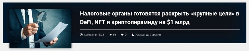 «Некоторые из имеющихся наводок указывают на лиц, совершающих значительные объемы транзакций с NFT, потенциально связанных с налоговыми и иными финансовыми преступлениями в наших юрисдикциях, — сказал глава отдела уголовного розыска Налогового управления США Джим Ли. – В одном из случаев речь также идет, предположительно, о финансовой пирамиде на $1 млрд».