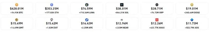 На третьем месте по ликвидации за последние 24 часа оказался альткоин terra (LUNA), где объем составил почти $75 млн. Всего же за последние сутки рынок снес ордера порядка 400 000 трейдеров.