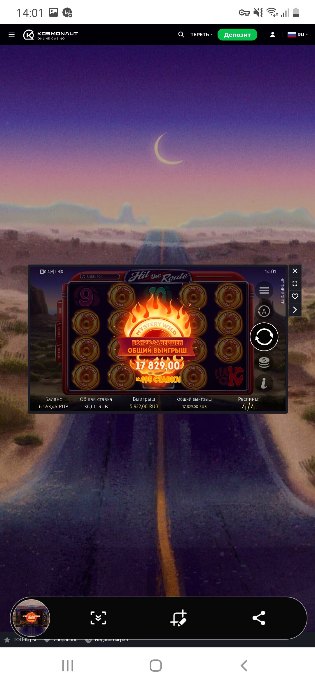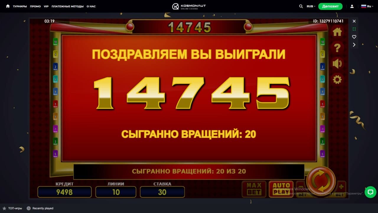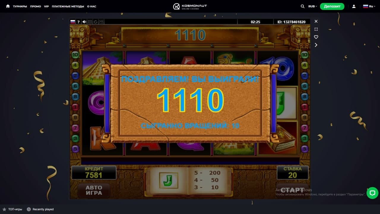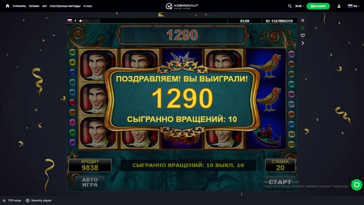 Гонка на 1500$ от Kosmonaut Casino