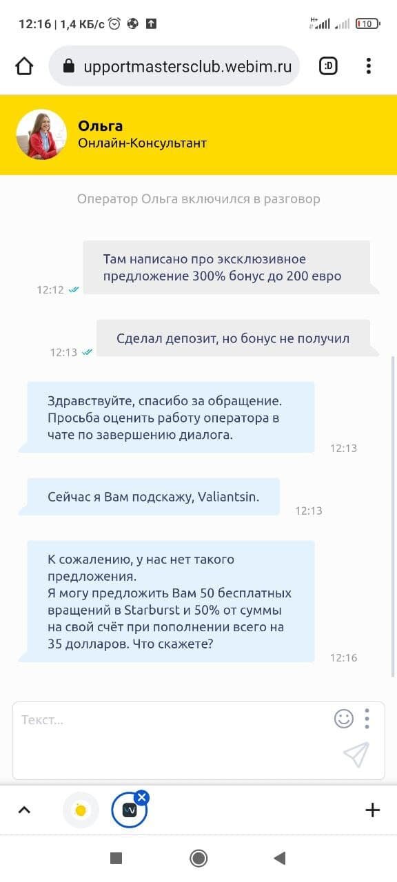 Ну и конечно же в чате ничем помочь не могут ибо такого бонуса у них нет.