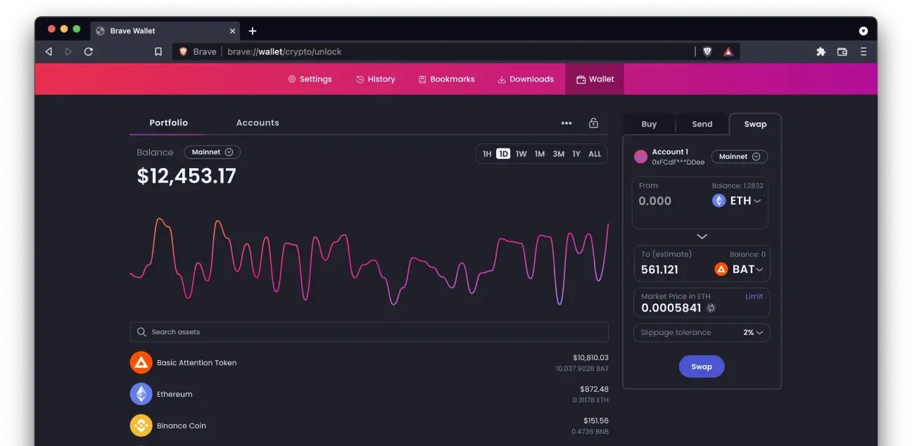 В Brave пообещали, что пользователи могут совершать транзакции практически с любыми криптоактивами, а также подключаться к другим кошелькам и DApps Web3.