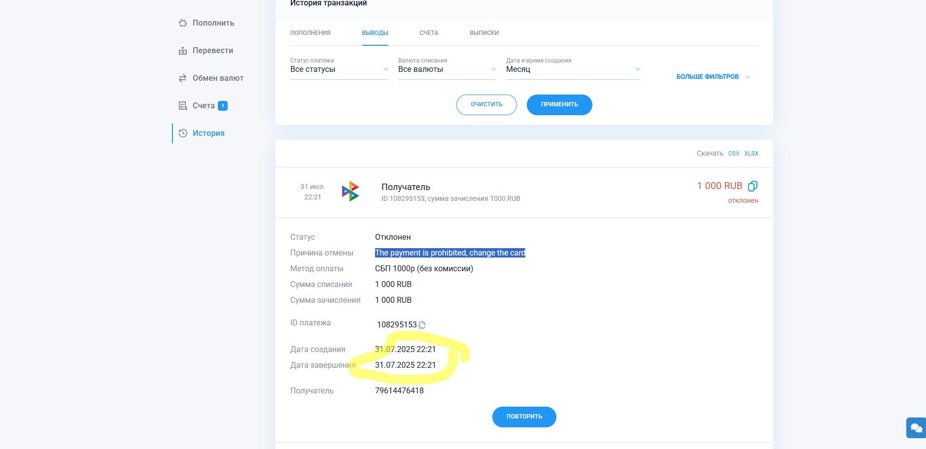 Piastrix / Задержка перевода средств на карту!