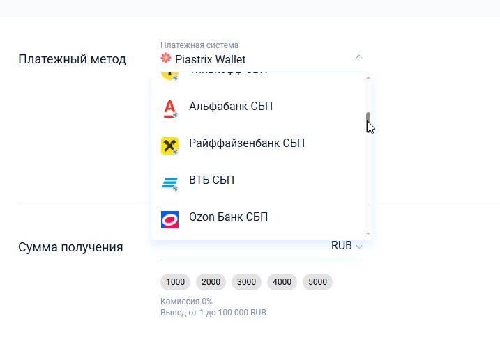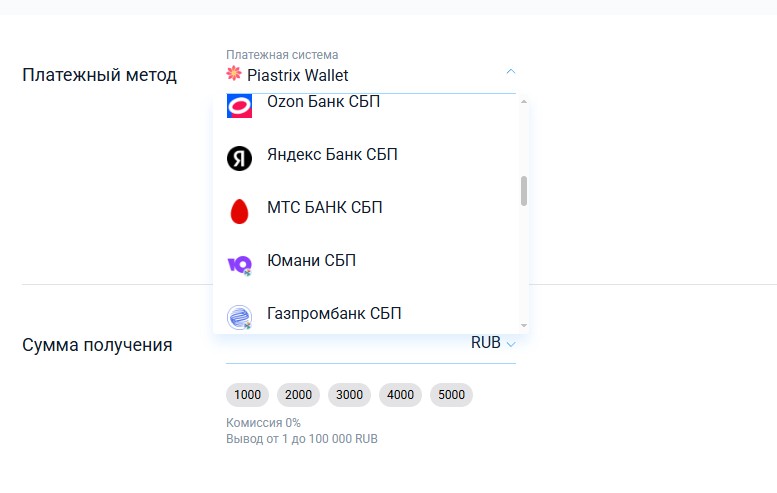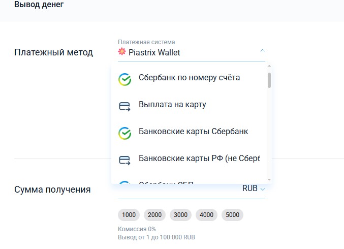 Посмотрел пишут что нет выводов на сбер на Piastrix