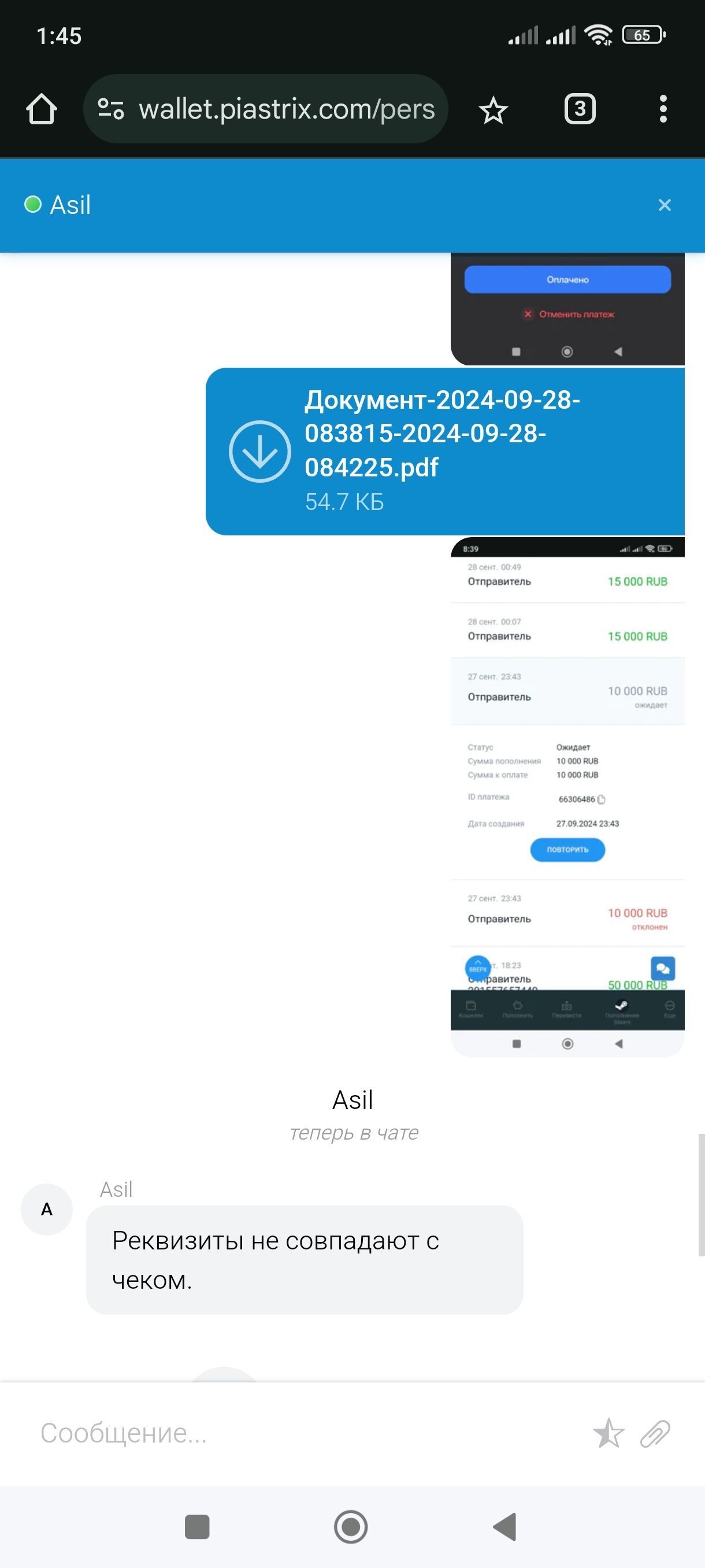 Понял, 1700 я свои походу тоже потерял) скрин то у меня есть и ID платежа есть( не который в пиастре а который система выдает большой такой код) но служба поддержки не отвечает на сайте 22 часа, в тг 18 часов.