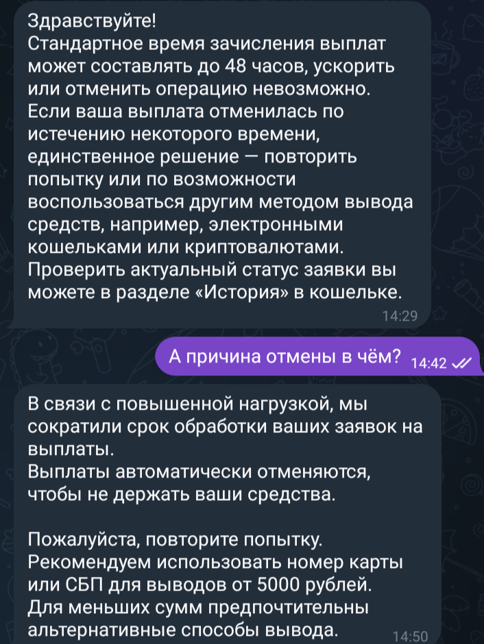 Пока что зaдHица полная, вторые сутки отменяют перевод на карты Сбера.