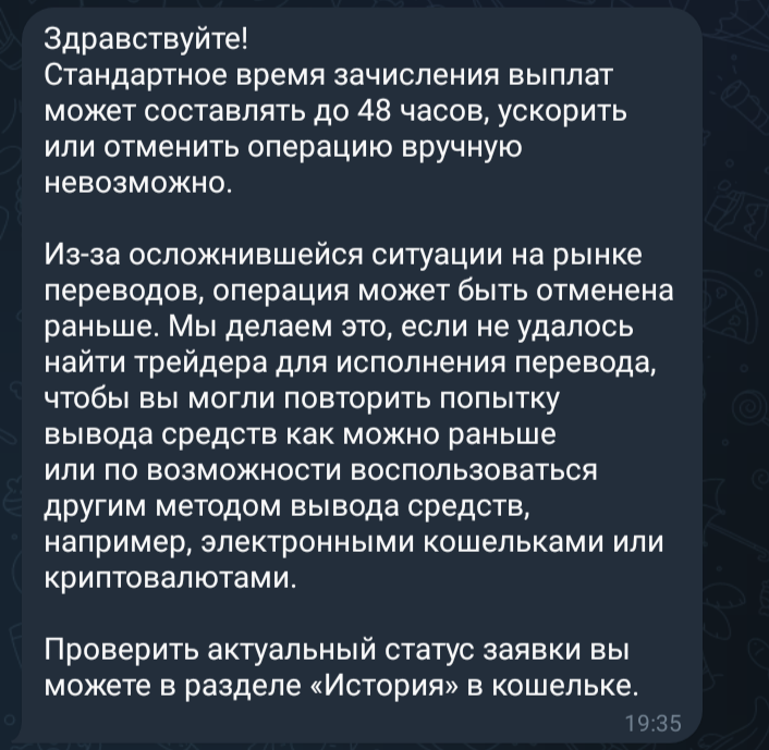 Сомнение ипaть, меня на 10 дней мучений хватило, неделю пополняю по номеру счёта и вывожу на карту Альфа, пока в старде канает. А так вон пионеры пишут шо им без проблем выводят, правда без пруфов…такое…