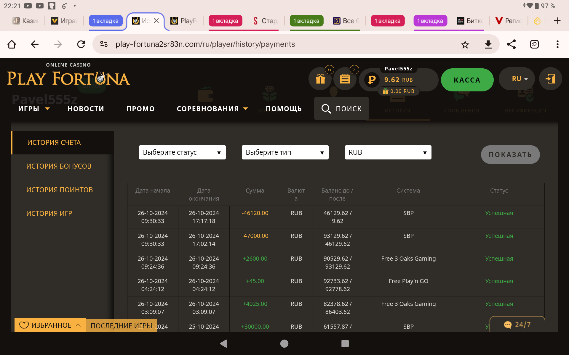 ….тоже сегодня 94.000 вывел по сбп,два часа по регламенту у них всегда и деньги у меня на карте,счёте в банке, правда сегодня суббота и везде в выходные проблемы по сбп,поэтому мне с задержкой вывела ПФ сегодня,но так я и внимания не обращал и даже и не задумывался,выведут или нет,потому что они💯выводят,как в банке,но я как то и внимания не обратил,мне ещё с трёх казь по сбп вывели тысяч 600 и и всё пришло ото всех,пусть и кто-то 15 часов выводил,а кто то 2 часа или час,всё пришло четко.Никому ни копейки никаких процентов не плачу!В Плейфортуне проблем нет никаких,они наладили выводы💯 так вот,я о чем,что депы принимают четко,что выводят четко ,никакой Пиастрикс не нужен в принципе,так и должно быть везде,а где нет этого,то используем криптокошелек и все дела!!!!!!