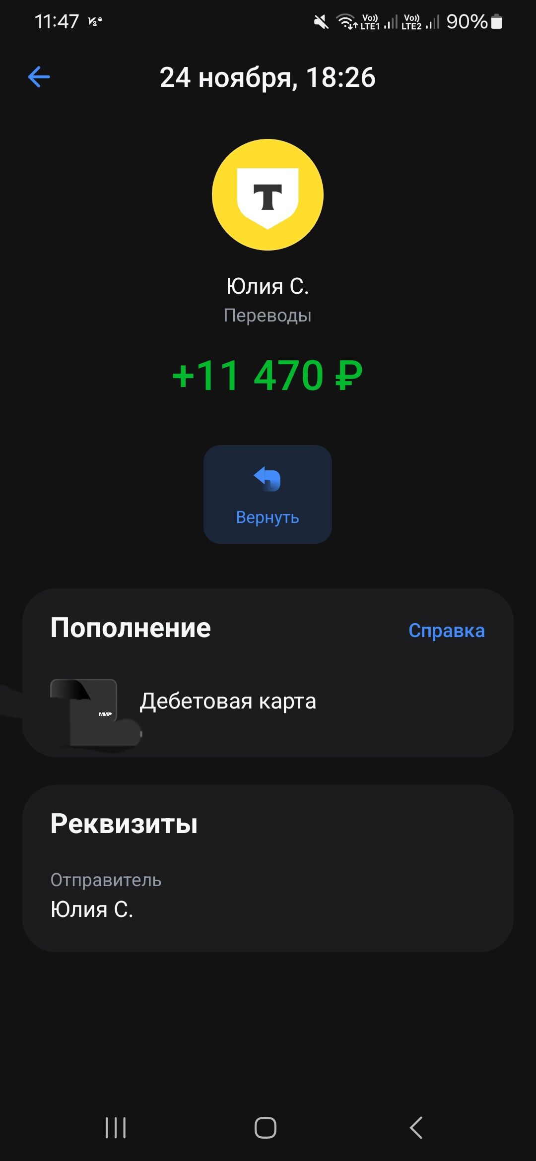когда в чат ии написал они ответили что как найдется исполнитель выведут или отмегиться . вообщем вопрос у меня возник , у них вывод стали чтот тип p2p? переводы последнии глянул, это простой перевод по сбп от физ.лица