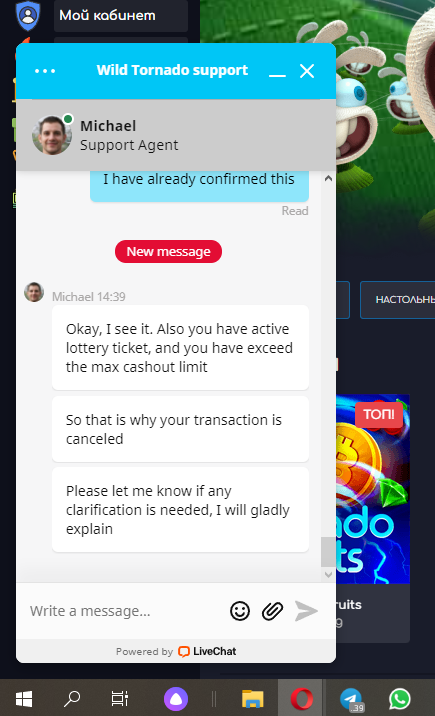У вас в чате больной агент , он несет мне ахинею про верефикацию , которую я проходил ( то что он пишет при чем два раза) Вывод мне отменили . Это больница