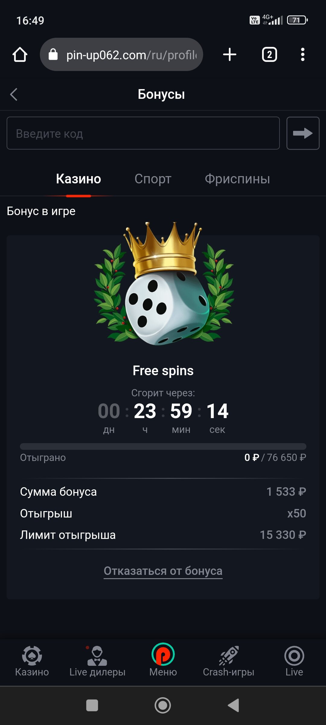Мне за все правильно ответы за70 спинов дали по 20 руб в слот от бигейминг pin-up bananza накидал 1533руб