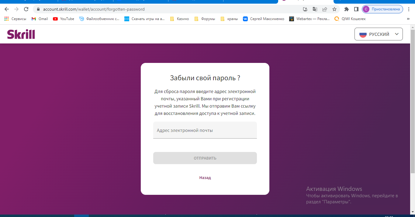 На сайт скрилл зайти не возможно пишет всё время что то пошло не так!