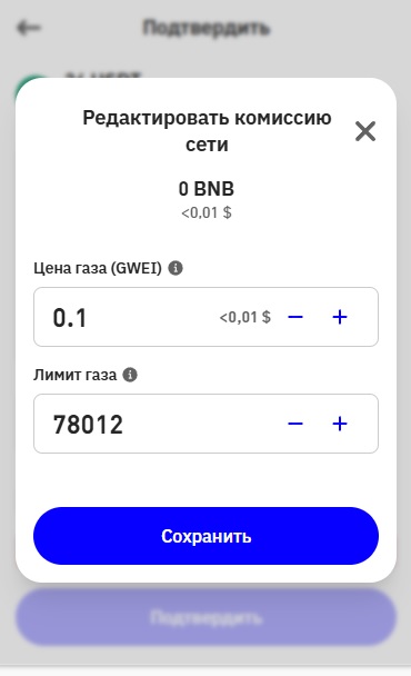 Можешь скриншотом скинуть? А то пытаюсь просит только бнб за газ.