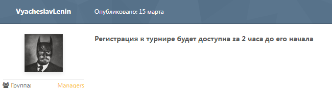 а на форуме регистрация открывается в турнир, за сутки до его начала