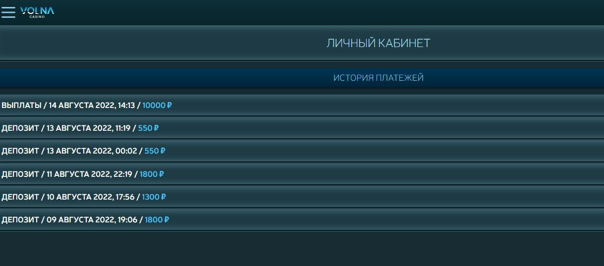 В Волну зашла первый раз, сделала для проверки депозит 2000. Мгновенно поднялась до 8000, но сдуру не вывела, так как встряла в турнир. И что? Депозит, естественно быстро обнулился. Ну ладно, это бывает. На второй день решила почитать отзывы. Народ пишет одно и то же — Можно продержаться какое-то время только первый раз. Потом ВСЕ. Сколько депозитов не кидай — слоты мертвые, нигде ничего не дают. Сделала для проверки еще пару депозитов с разницей в сутки. И точно. Просто тупое падение, даже вид не делают, что у них игра. Любой провайдер, любой слот, любая ставка — тупо пустые спины. По 30-50 штук, потом, может, кинут х5, и поять в еоль. Скаттеров только 2. Такое ощущение. что у них их вообще 2, третьего не видела. Вот такая гнилая контора.