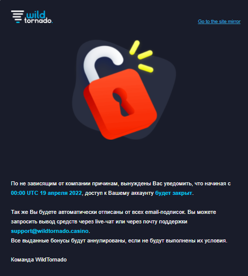 Вот они ушли. Но аккаунт мне не заблокировали. Возможность внести депозит есть. Даже зеркало рабочие.