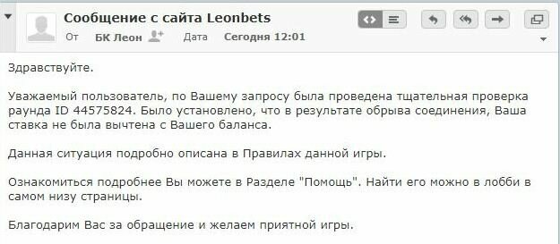 Тут же написал в суппорт, и получил стандартно- формальный ответ… Мол деньги за ставку ведь вернули… Ни чего не меняется в этом азартном «мирке».)