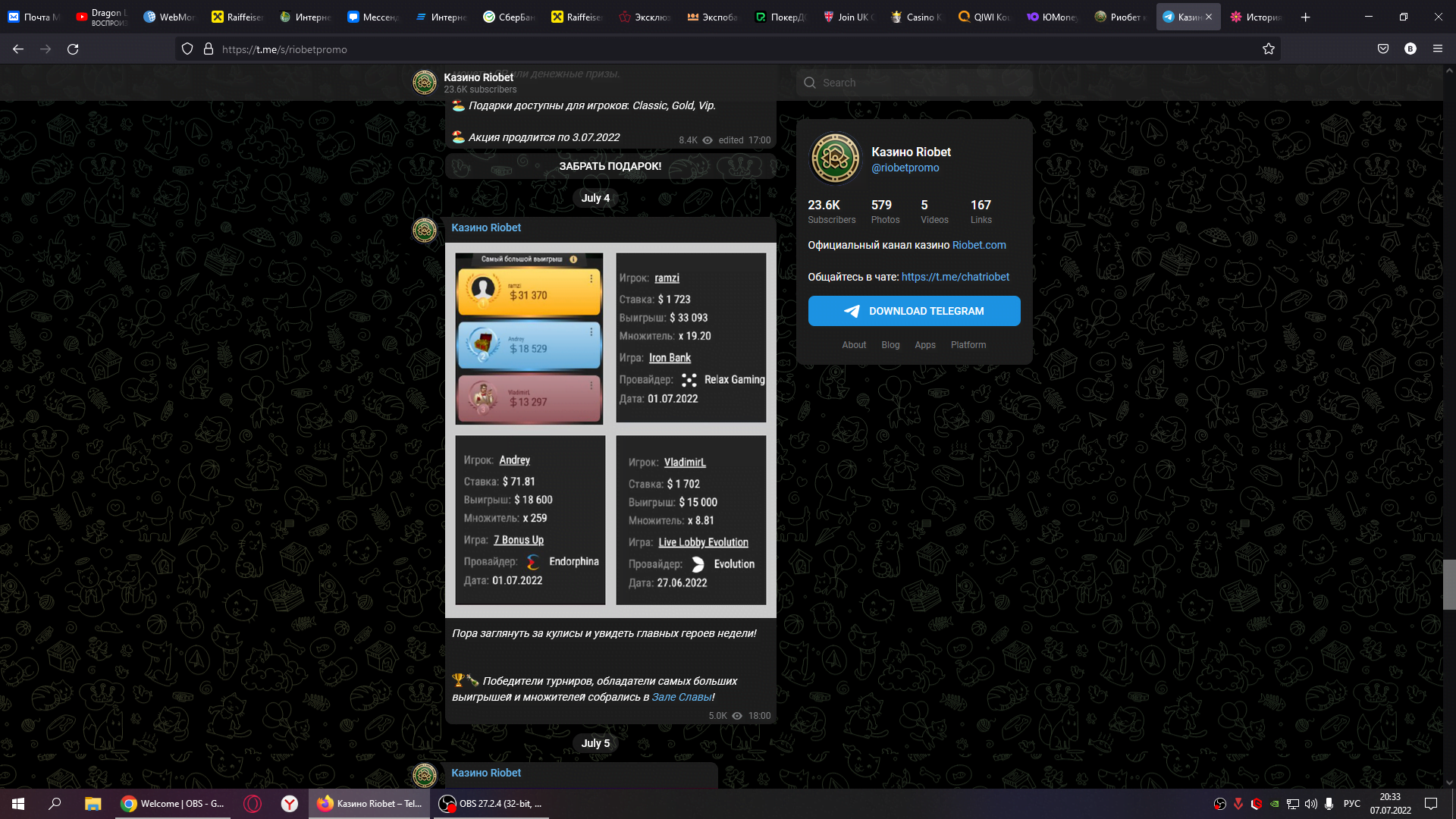 Где вагер на 20 тысяч и где рио бет?!))))даже сейчас,когда они наконец реально включили лицензионные слоты и я должен это по чести и совести признать (кстати моя заслуга наверняка в этом тоже есть!)и то пару месяцев как,они ,когда игрок сильно душит и накачивает слот,проссо отключают играющего от этого слота,если нельзя выкрутить rtp в пределах пакета от производителя!И все!И не надо тут рассказывать что ты занес в Микру!)да еще при том,что она отключена в том же риобете для ру игроков в принципе!