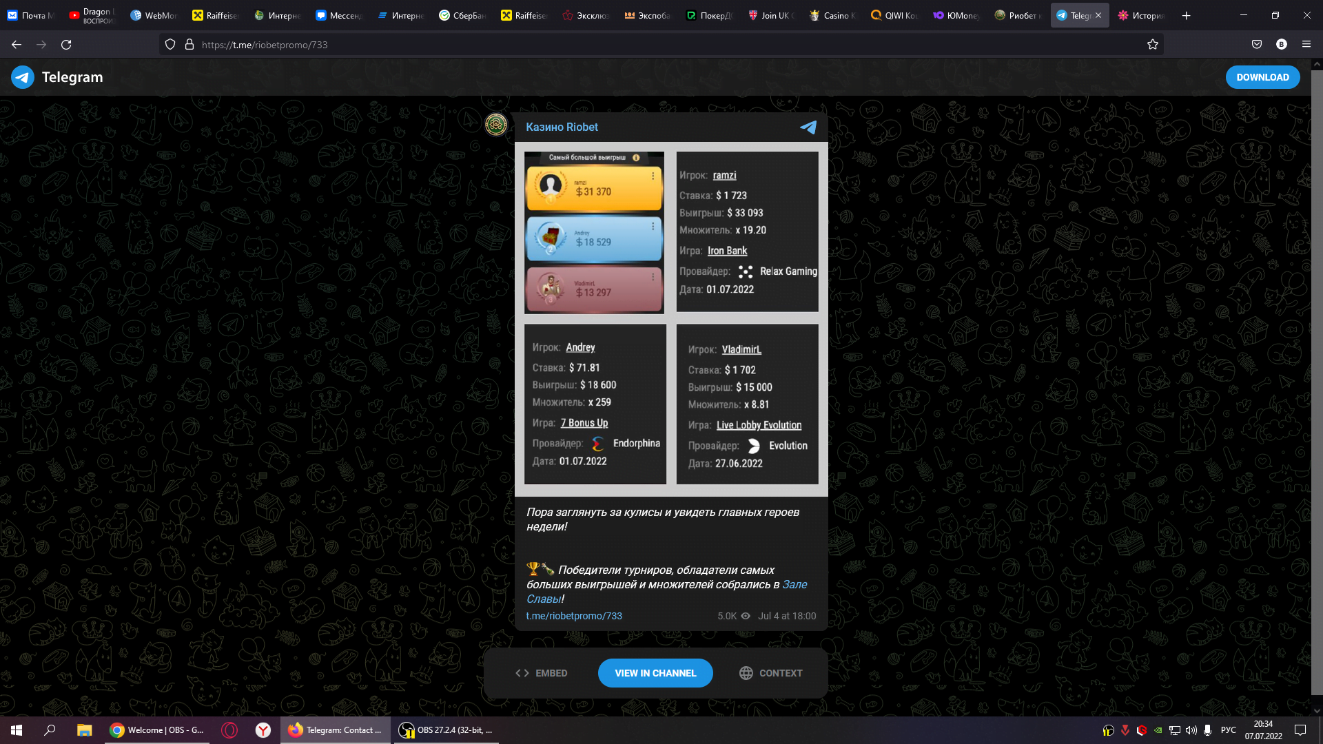 вО СНЕ,ДРУЖИЩЕ!Но склоняюсь больше к тому,что на экране в админ студии тех поддержки самого Рио Бета!Они вообще любители такие вагеры ставить!Вот вАм пример кстати с телеграмма рио бета!)))))тоже очень смешно!сМЕХ продляет жизнь и это единственный аргумент в пользу администрации риобета!!тОЛЬКО МНЕ НЕ СМЕШНО С МОИМ МИНУСОМ у них и это точно!