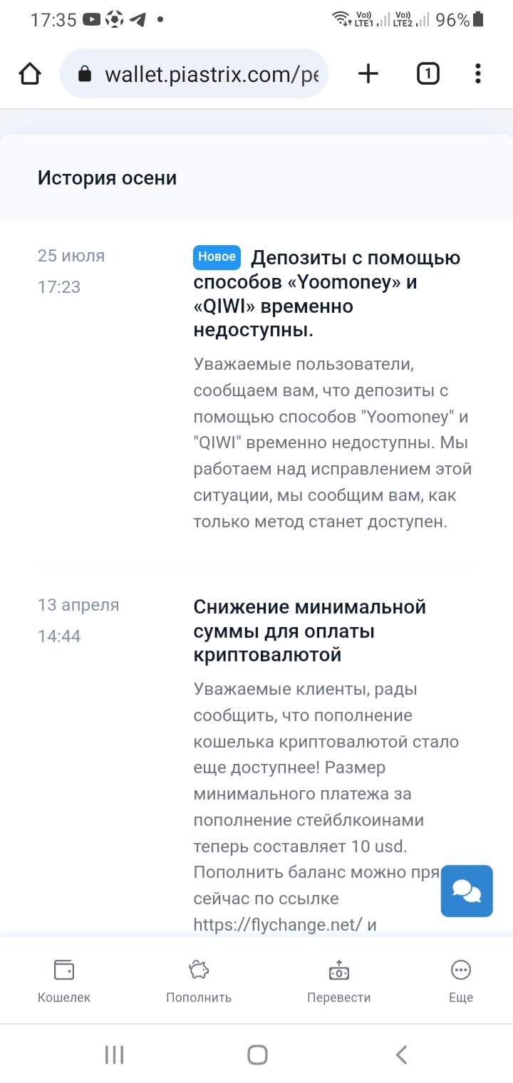у всех в данный момент разумееться!у них такое бывает.что тебе мешает через быстрые платежи загонять на пиастрикс временно?!