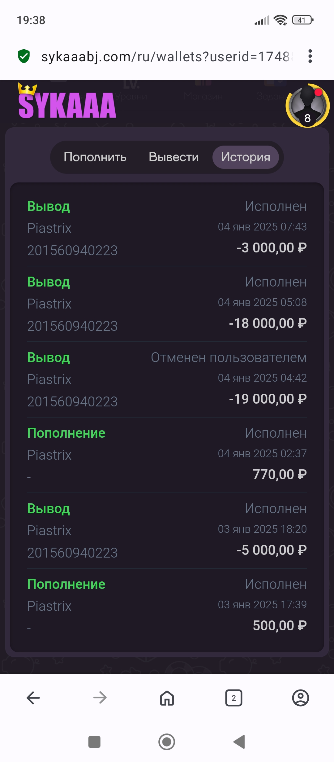 В sykaaa , как в пиастриксе стало::))) ставишь вывод , 50%/50% или снимут быстро, почти мгновенно, или вернутся обратно:)))