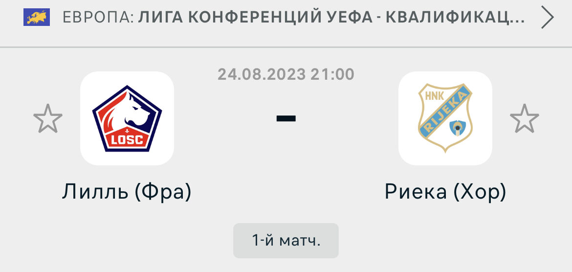 Еще ни в одном из матчей с участием “Лилля” в стартовавщем сезоне не было забито более двух мячей. 67% игр “Риеки”, проведенных на чужом поле, также включали менее трех взятий ворот. Учитывая столь низкую результативность матчей играющих команд, можно рассмотреть для ставки ТМ (2,5) за 1.60.