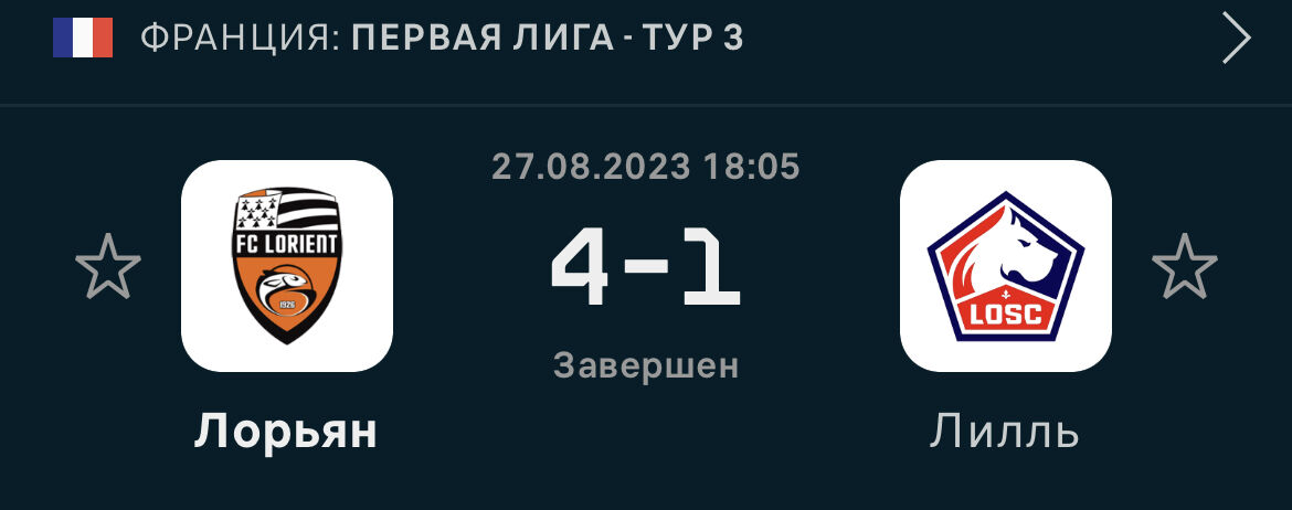 Лорьян еще ч первом тайме показал кто в доме хозяин , а в сумме забили итого 5 голов, правда последний ВАР отменили из-за оффсайда . Во 2-м тайме Лилль взял игру в свои руки и даже забили гол, но потом пустили еще два)