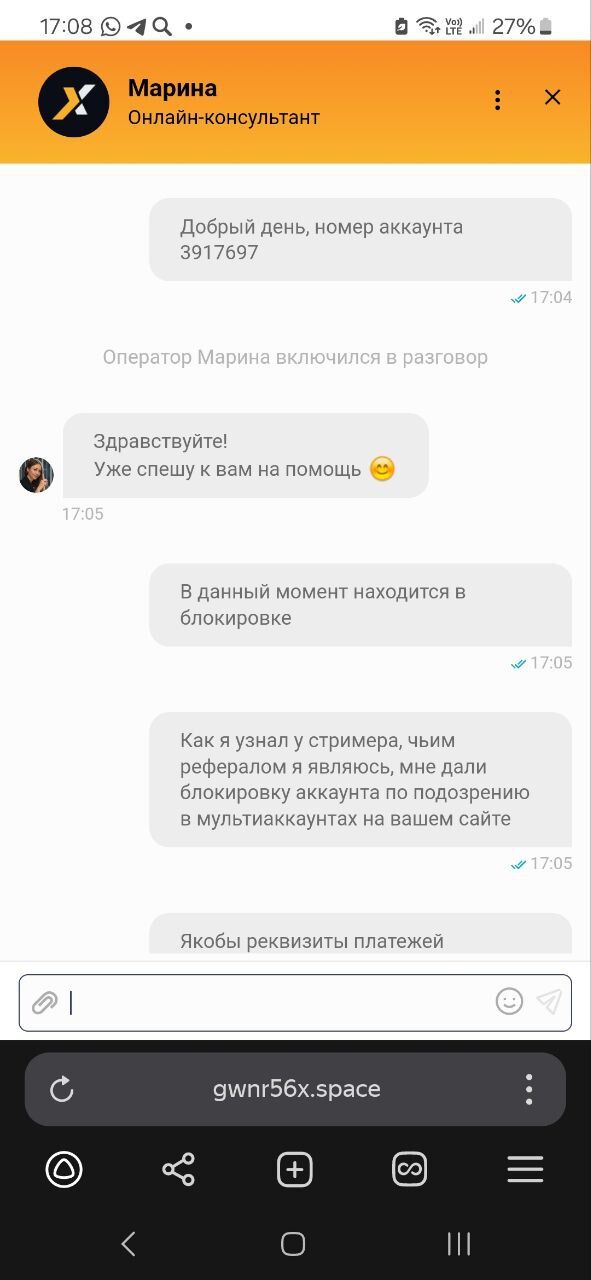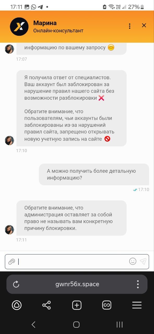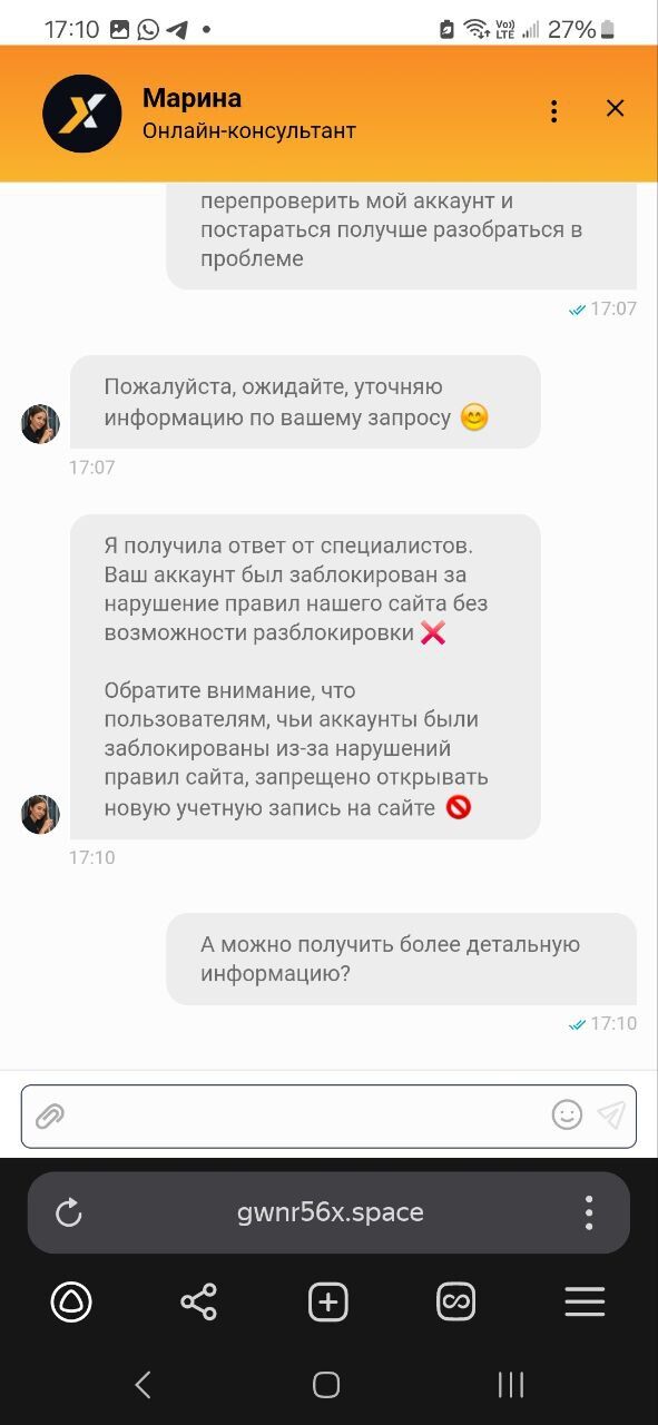 Сначала показался хорошим проектом, у стримера была акция, я решил залететь, чуть подепать, поиграть, повыводить. В целом, на сайте шел в плюсах (небольших), в очередной раз решил вывести 2400 рублей — внезапно сайт запросил верификацию. Ну, думаю, странно, но окей. Акция у стримера шла, поэтому я депнул еще немного, и слил все бабки, что были на аккаунте. 3 дня висели фотки на верификацию, а после 3-ех дней обнаружил, что аккаунт забанен. Сначала писал в поддержку — ответ «за нарушения сайта», написал модеру стримера, он написал менеджеру сайта — выдали информацию о том, что я якобы имею пересекающиеся платежи с другими аккаунтами на сайте (реквизиты пересекаются), хотя делать мультиаккаунты на этом сайте просто бессмысленно — ведь на нем нет даже колёс. Я вернулся в поддержку, написал им, результат на скринах. В акцию от стримера не попал (акк заблочен), расстроен, но так и не понял, почему они со мной так поступили, ведь я даже не выводил крупные суммы.