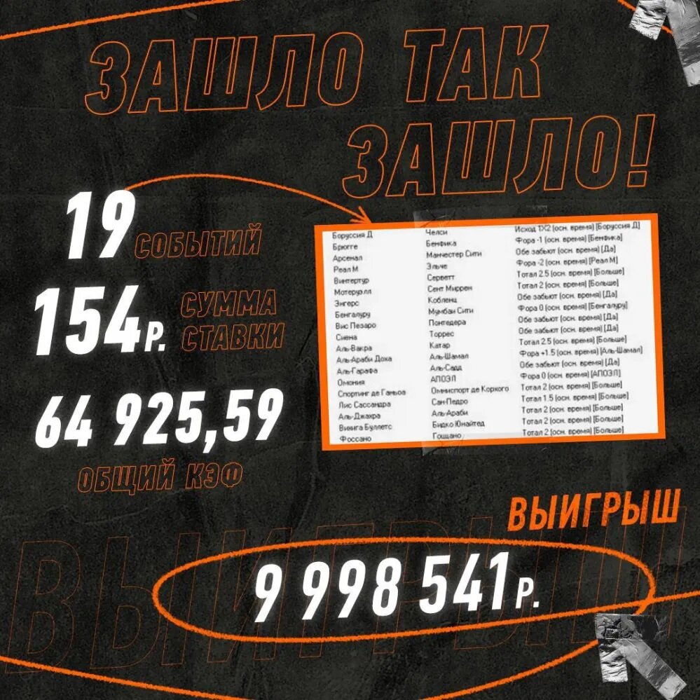 Беттор поставил 154 рубля и выиграл 10 миллионов