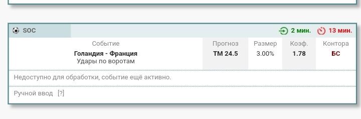 В Лондоне перебрали на 1 аут, хотя после первого тайма было всего 13 аутов вброшено. И немного не угадал с победителем матча. А так все остальное читалось, но как следствие минус небольшой