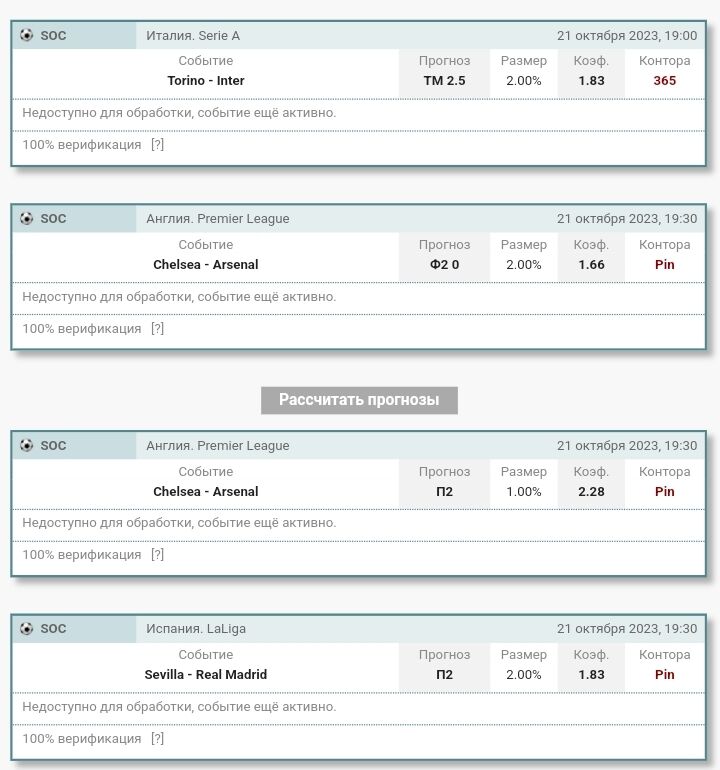 Еще порция прогнозов на сегодня, уверен в Реале и Арсенале