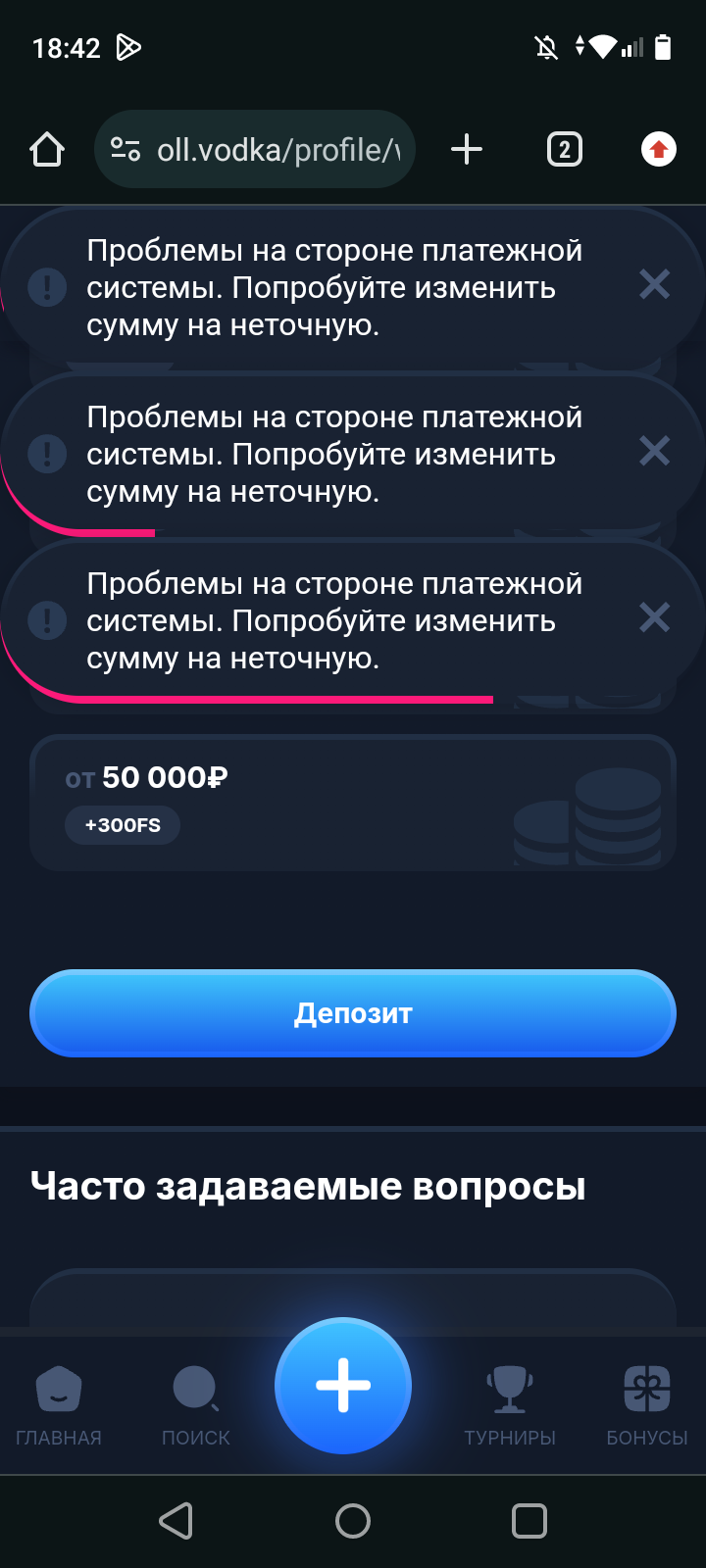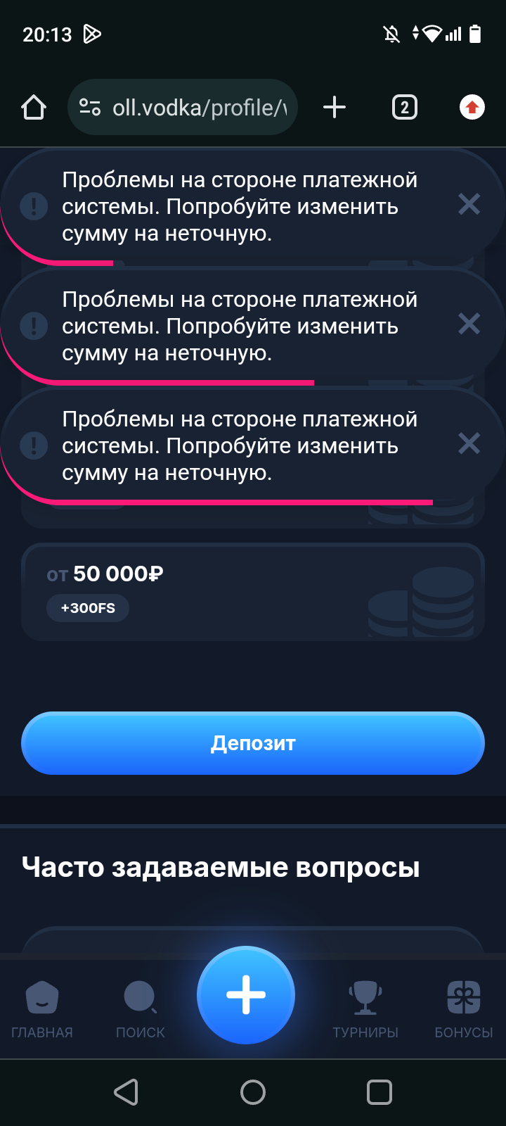 Я пару дней назад пытался задепать в водку, где-то пол часа прождал, на обе иконки сбп выдавало ошибку при депе, вводил разные суммы тоже ошибка, потом через пол часа получилось и реквизиты выдало.