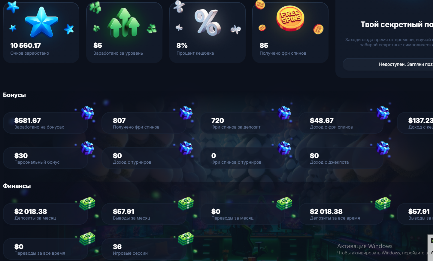 Ну а плюсовые моменты тоже есть конечно же! Но уж уж поверьте это точно не из за пятнашки с магаза) там обычно я депаю тыщ 50 и вывожу тыщ 200 — а та пятнашка которую зачисляют обычно улетает за 20 спинов 😀
