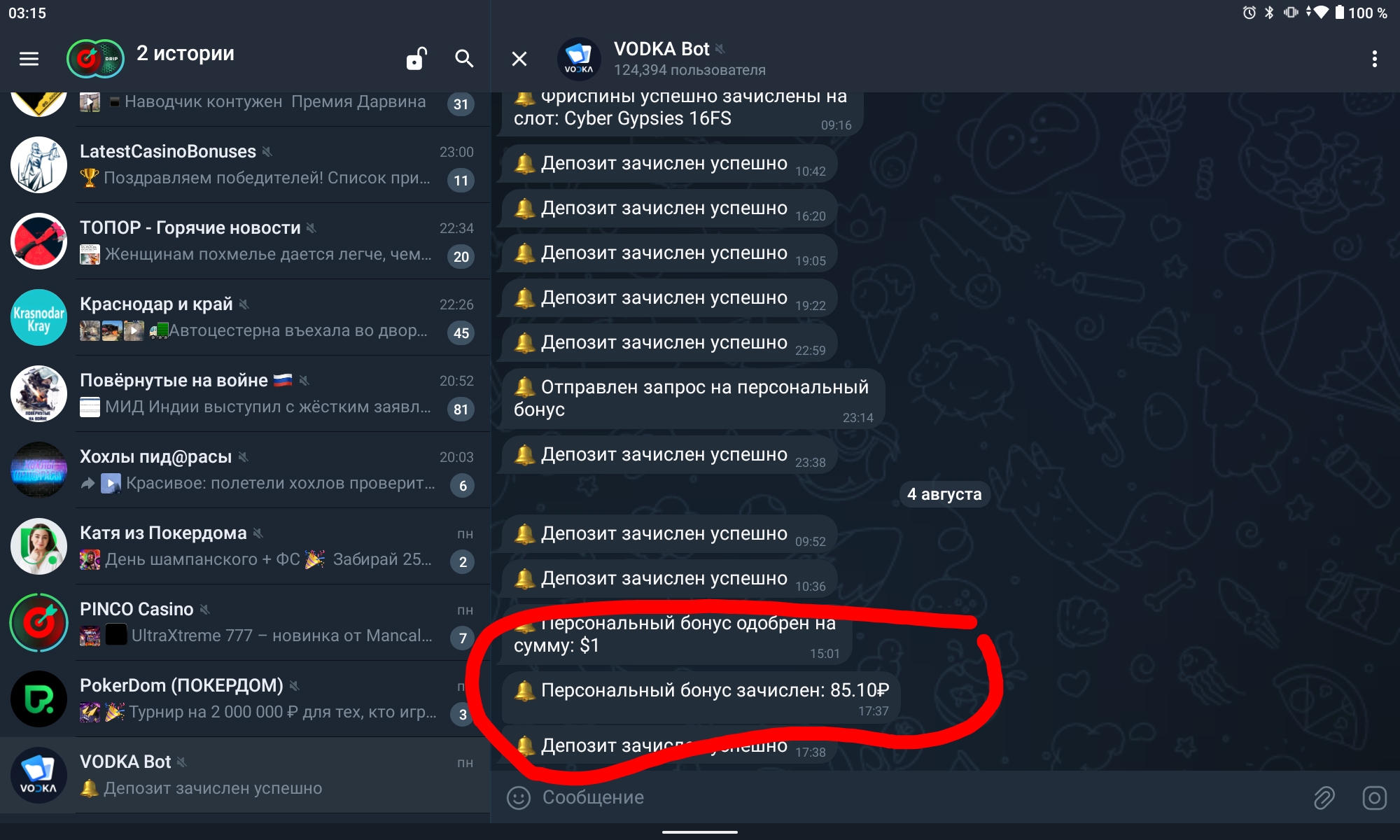 Промониторил сейчас слоты прагмата в которые чаще всего играю, а именно какие х-совки выбивал в бонусках. Сравнивал казино Вавада, Джой, Криптобосс, ПФ, Драгон и Водка. Больше всего х10-20 у меня в казино Водка. Причем в истории подряд по 20 бонусок именно х10-20. Это без исключения в любом слоте в котором чаще всего играю, самые худшие из сохраненных результатов именно в Водке. Я не на что не намекаю, просто статистика.