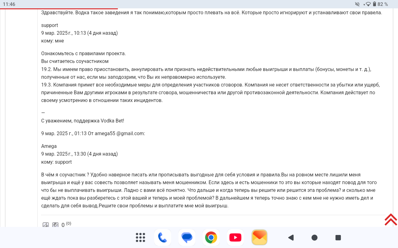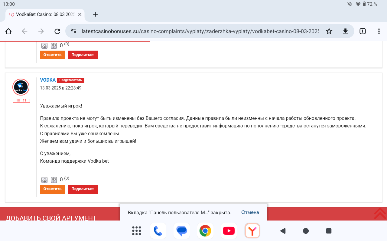 На акк водки я такого делать не планирую, да я с водки не в восторге но если ОНИ МЕНЯ НЕ КИДАЮТ почему я должен кидать их? я не говорю про отдачи и тд — лично у меня если казино ЖРЕТ это не значит что оно кидалово т.к доказать может ли водка подкрутить ИЛИ НЕ МОЖЕТ не сможет никто, т.к даже провайдеры могут врать. Для меня казино СКАМ и кидалово — когда оно конкретно не выводит деньги своим игрокам, и про водку в данный момент я такого не скажу ! Все жалобы были решены в пользу игроков ( все жалобы о задержки выплаты) и лично я конкретного скама при выплате с водки не слышал даже по слухам ( что нельзя сказать и о котах, и о роялах!)