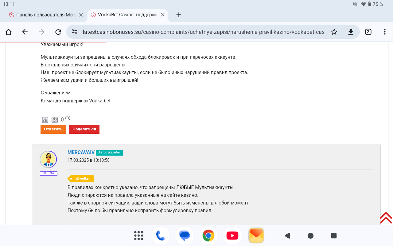 Там в жалобах водки менеджер отвечает как бот, я помню была проблема с тем что старый вейджер прилетал даже на новые депозиты — так тот тоже не внятно что то по скрипту отвечал пока я 5 раз ему не писал! по итогу видимо наконецто понял что я хочу.