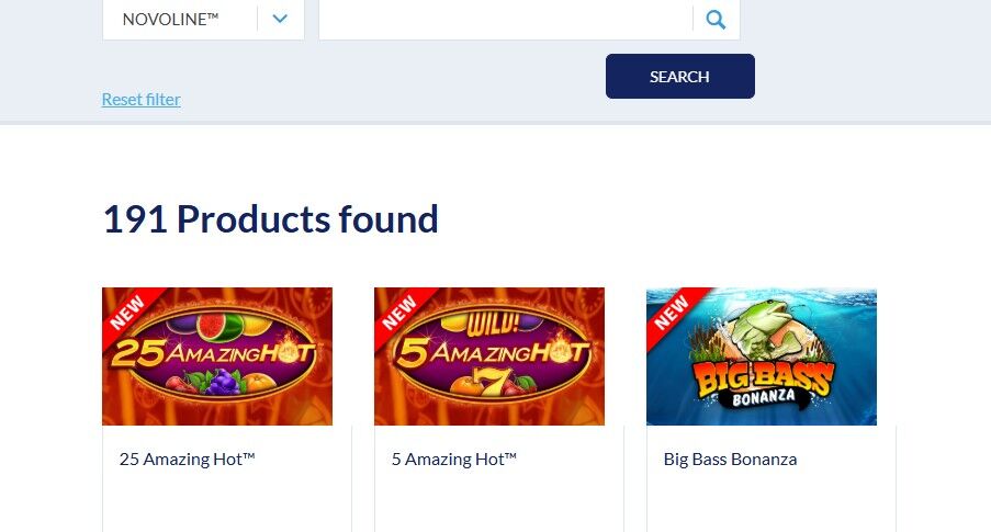 Опять-таки, если открыть жалобу-пример выше, я там привёл скриншот с сайта самого Novomatic, где у них есть фильтр по агрегаторам софта.