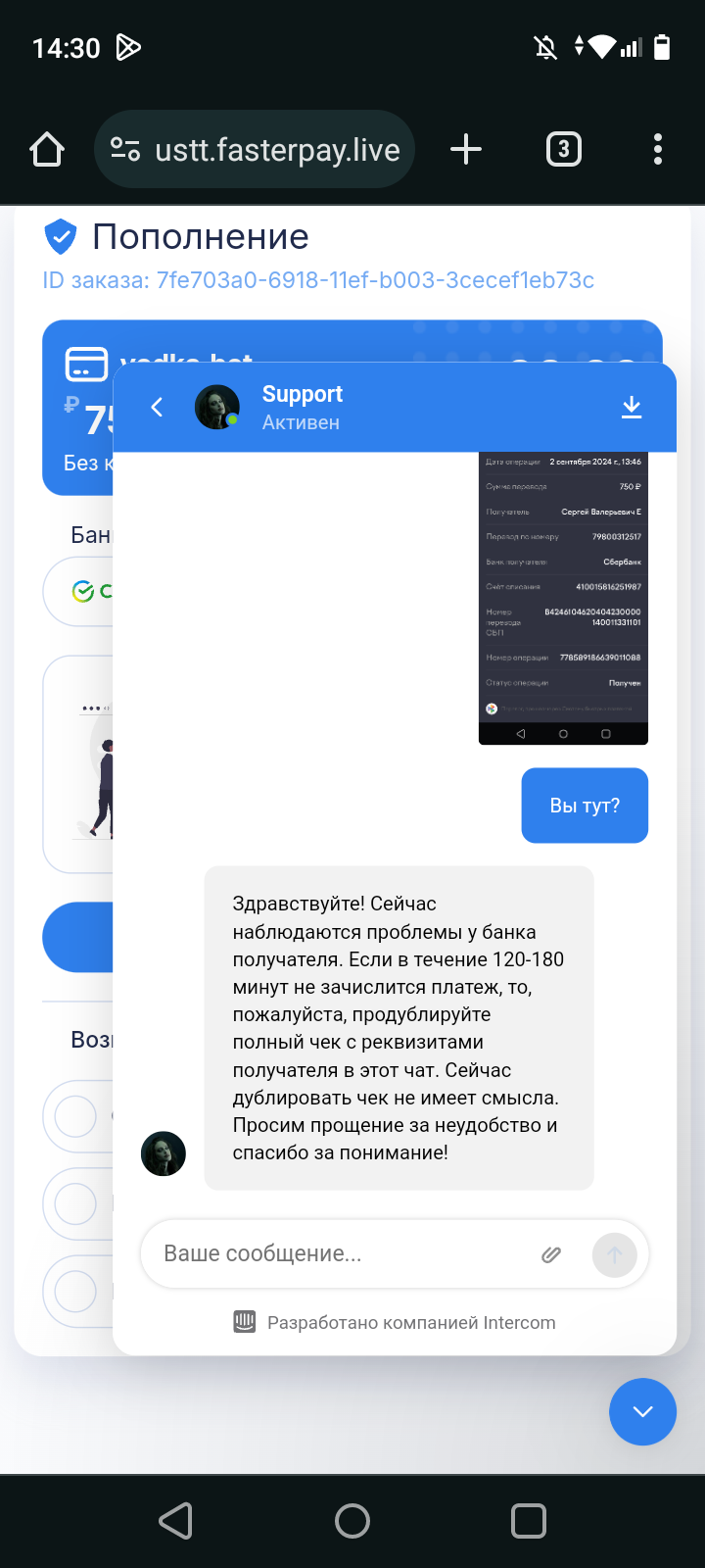 у них ответы быстрые но бывает сообщение как будто скипают и откладывают .у меня такое было что резко оператор перестал отвечать и потом ответили через 5 часов) тоже просто сообщение висело