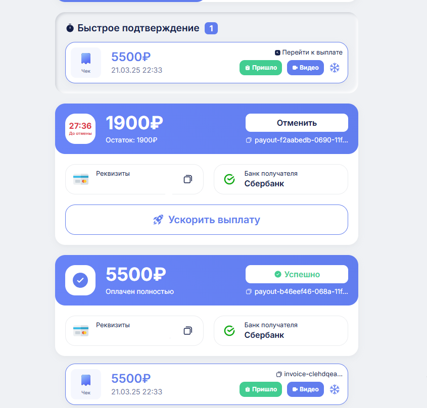В том то и дело что нету! Висит 1900 и всё(новая заявка) а 5500 нету и написано ОПЛАЧЕНО , хотя при этом висит значек заморозки ( синяя снежинка)