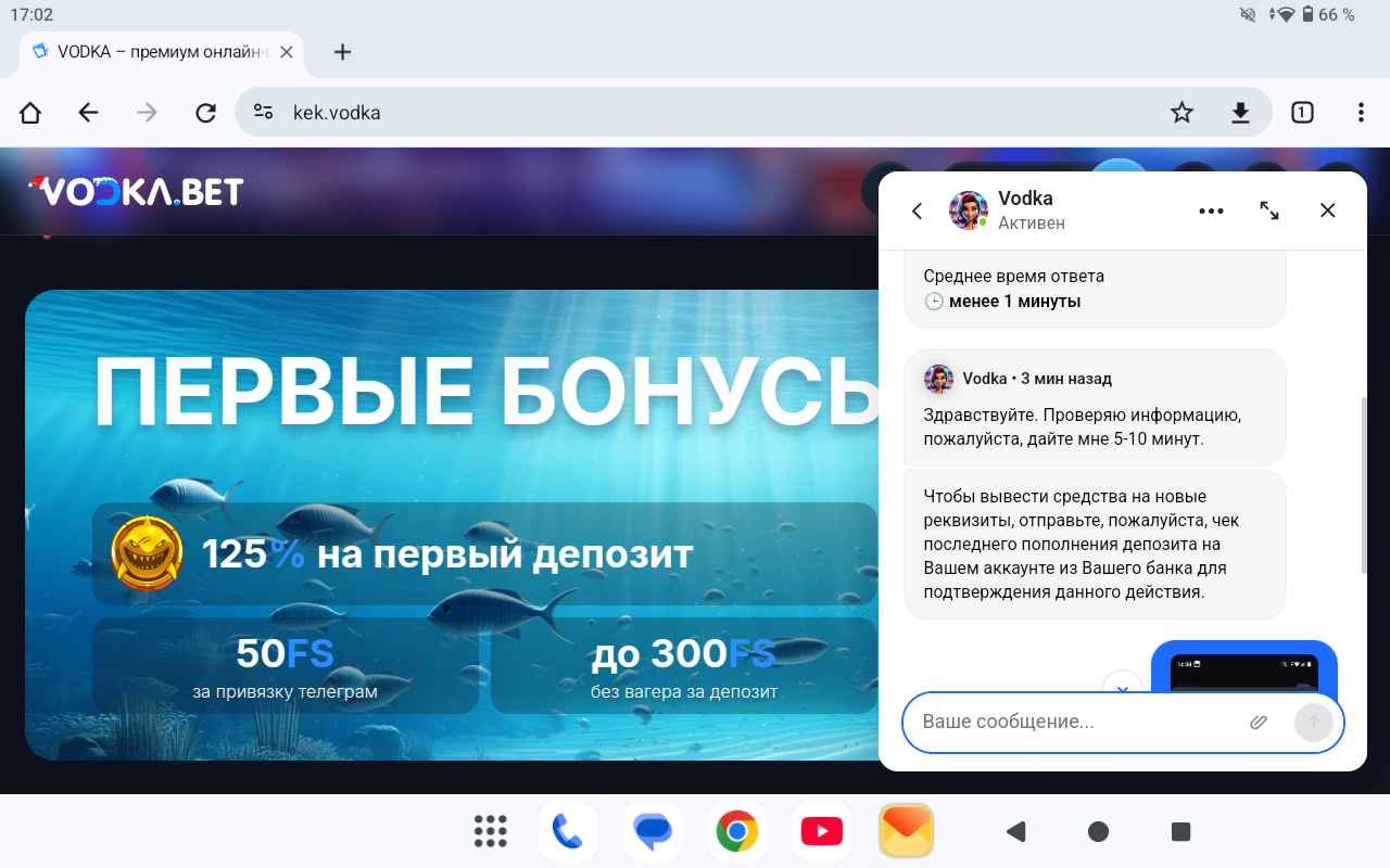 Ну если у них не загружено (как у меня было) то сразу после чека в чат проверяют и одобряют, а как по скорости ты уже чек грузить будешь — думаю по разному, у меня секунд 30 на такое уходит (рука уже набита чеки загружать постоянно при депах)