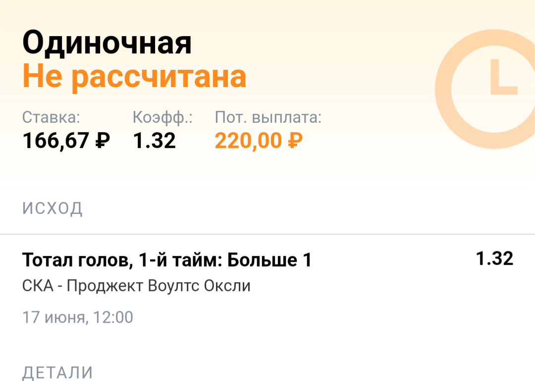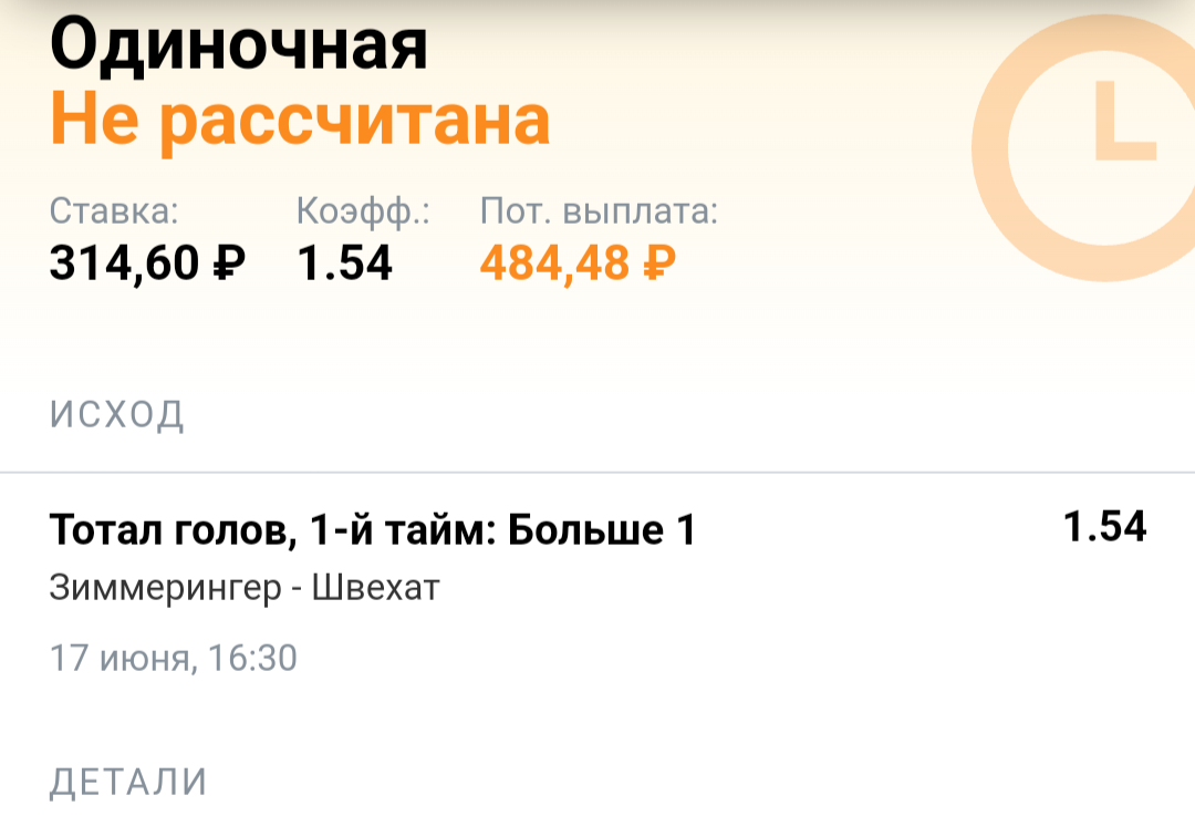 🔁 Десятая ступень сыграла на возврат, закончив первый тайм со счетом 0-1. Не дают нам ставки с возвратами перепрыгнуть потолок в 1К рублей , но и без возвратов играть тоже нельзя , возврат иногда выручает.