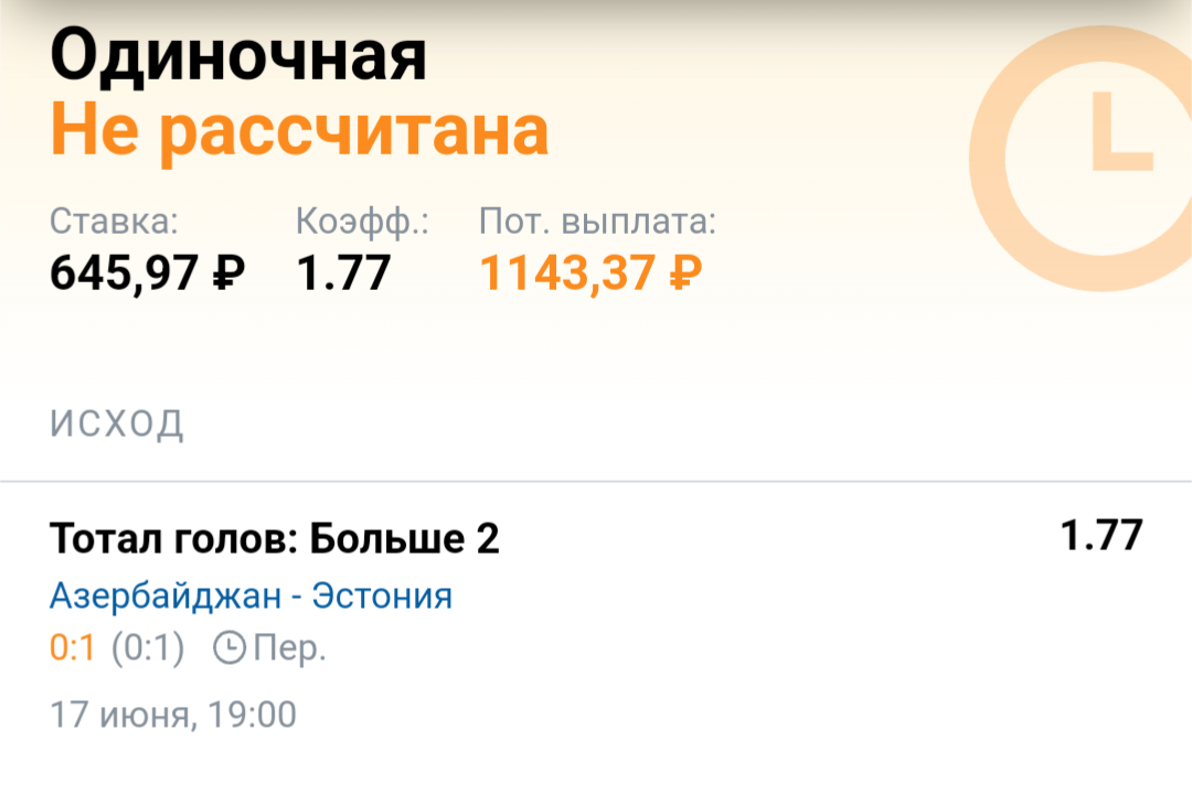 Девятой ступенькой зайдем на Live Азербайнджан — Эстония. Счёт на данный момент в перерыве 0-1 , есть смысл взять Тб 2 за кеф 1.77 . Впринципе жду ещё один гол от Эстонии ну ответку хотя бы один гол от П1 , в любом случае берём ставку с возвратом поэтому есть шанс как минимум на возврат. Едем .