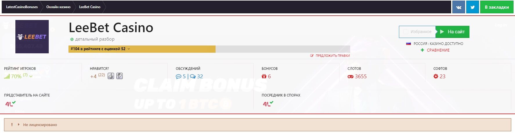 Либет отличное казино, очень много у них бонусов и быстрые выводы. Только я бы сказала, что это казино для тех игроков, которые играют по маленьким ставкам, для крупных игроков там скучные бонусы, 100% например с мкксимаотным бонусом до 6000 — 10000, это очень слабенько