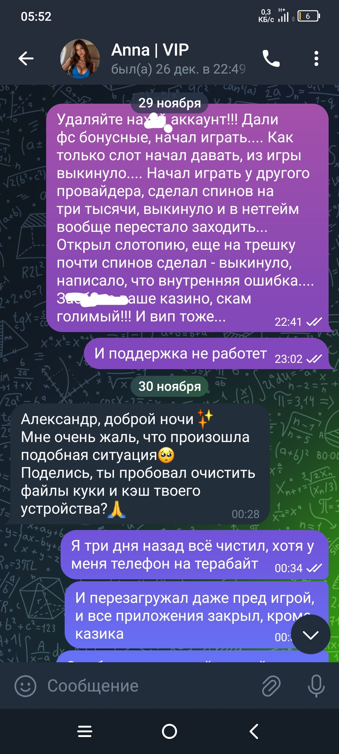 Казино кривое косое, создаёт при входе через телеграмм новый счёт и я теперь должен им писать что-то объяснять. До свидания такому казино, в любой момент они мне вспомнят что у меня есть мульт чтобы не платить.