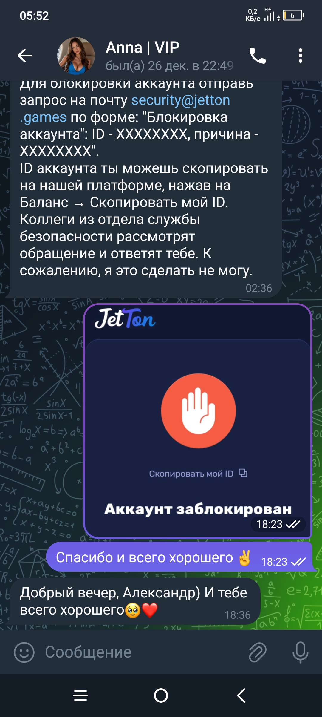 Я подал официальную жалобу и надеюсь, что Jetton пересмотрит свою политику и сделает правильный шаг — позволит нормально вывести выигрыш или вернёт средства. До тех пор — не рекомендую никому, особенно если играете на серьёзные суммы.