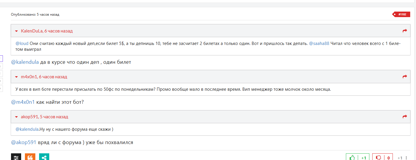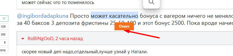 Также обратите внимание, что не нужно отвечать каждому пользователю отдельным сообщением. Для этого есть функция «Ответ». Когда просматриваете тему, просто выделите нужное сообщение и появится кнопка «Ответ». Нажимаете её, отвечаете, затем можете продолжать листать тему и добавлять ответы в один общий пост (см. скрины). Пожалуйста, пользуйтесь этой функцией, чтобы не засорять обсуждение лишними короткими сообщениями.