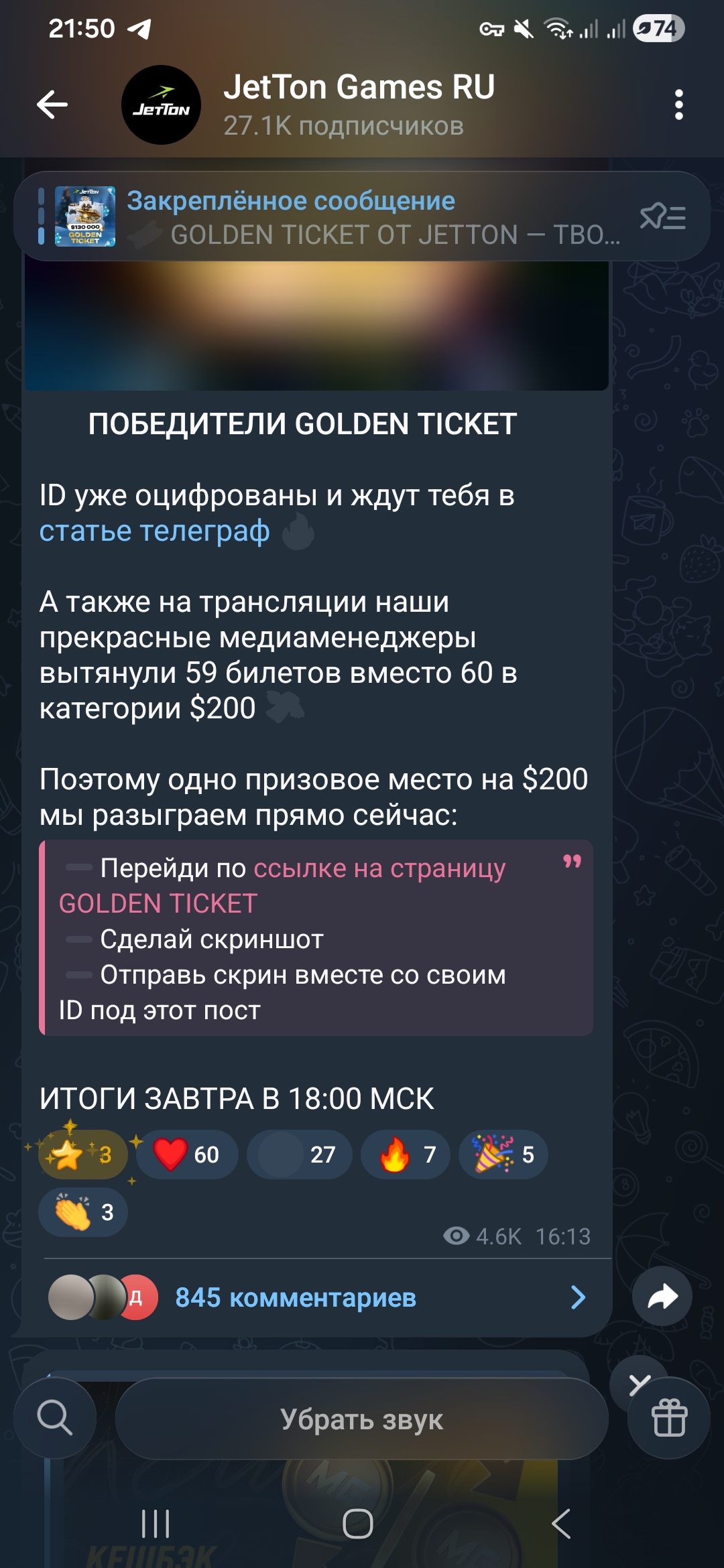 @robingood я мимо проверил. они мля даже до 60 считать не могут, дополнения к их «кристально честному » розыгрышу.. понятно, шансов ноль, но сам факт проведения розыгрыша говорит об многом те, кто в блоке, те пошли ….
